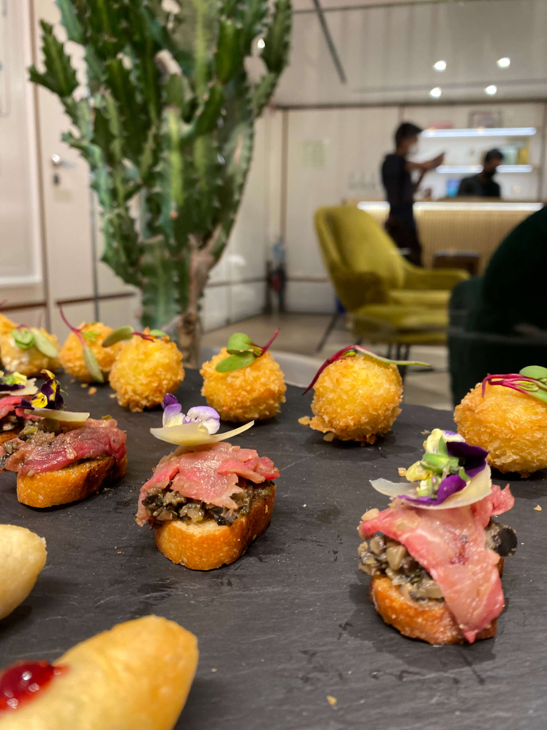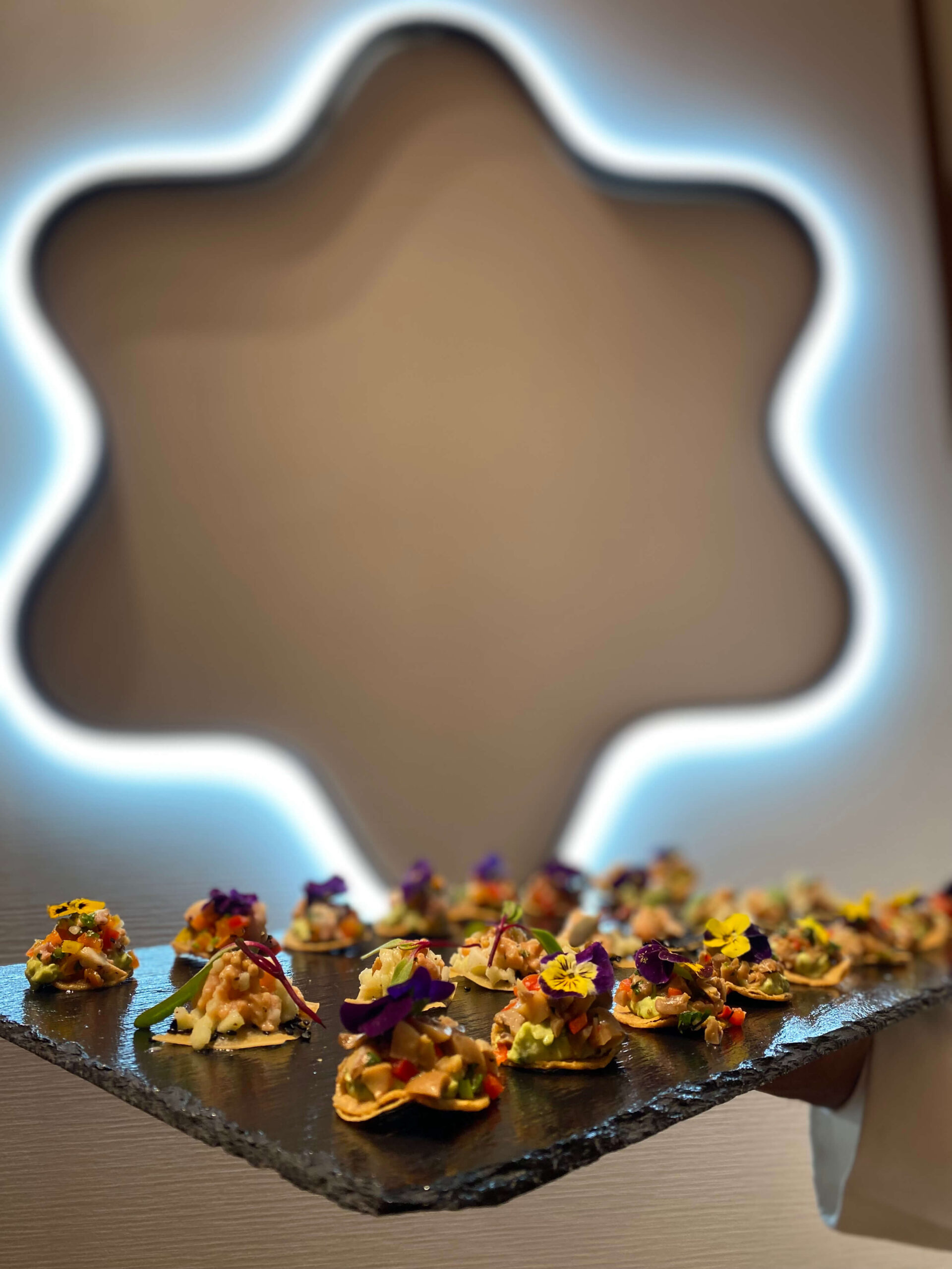 Ideales para eventos donde se busca una experiencia sofisticada y de alto impacto visual —como lanzamientos de producto, inauguraciones, cocteles ejecutivos o presentaciones de marca—. Cada canapé se consume en un solo bocado, sin necesidad de utensilios, lo que permite mantener la fluidez del evento sin perder elegancia.